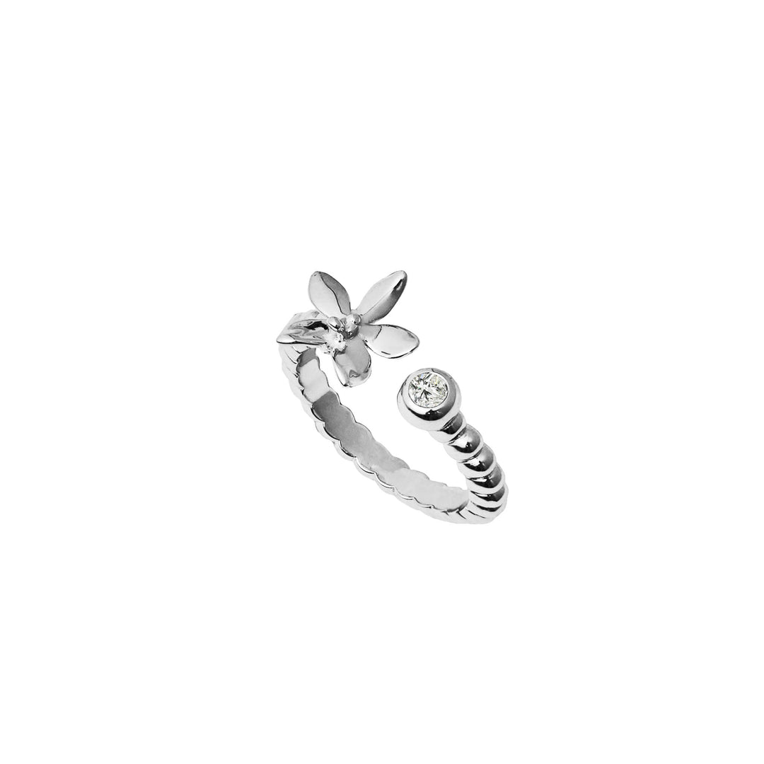Dainty Ascocenda Orchid Ring in Rhodium with White Topaz
