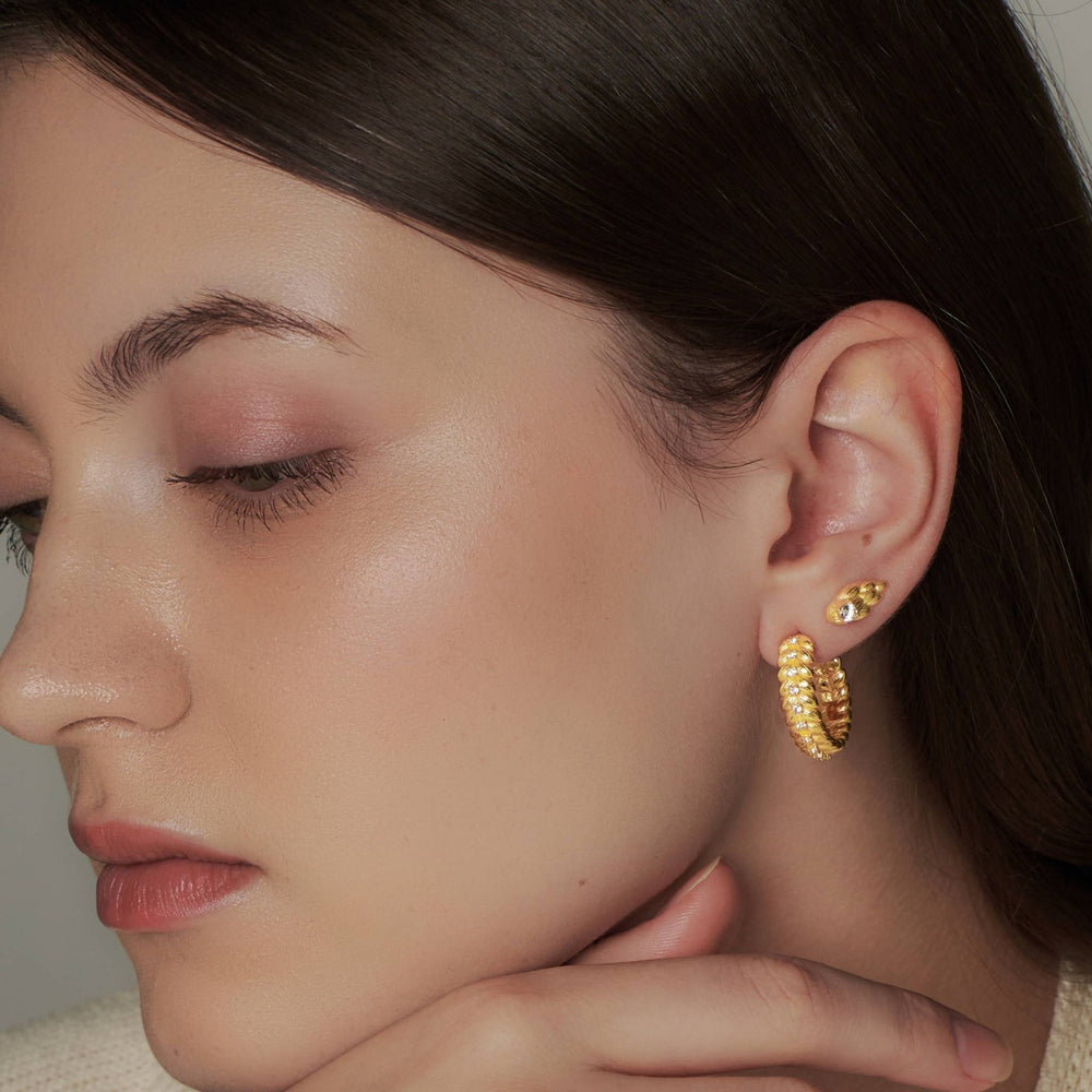 A fashion essential and everyday staple, RISIS earrings for women are beautifully curated to suit every occasion and elevate your personal style. Explore our diverse range of gold earrings for women, from captivating statement pieces of pearl earrings to shimmering gemstones of topaz earrings that complement your mood and outfit. Each pair is crafted with precision and elegant flair, showcasing the timeless allure of RISIS craftsmanship. Whether you prefer understated sophistication or bold glamour, our earrings offer a seamless blend of versatility and luxury, ensuring there's always a perfect pair that bring unique textures to your everyday look. Embrace the artistry inherent in RISIS earrings designed to seamlessly enhance your natural beauty from day to evening with our collection now at RISIS.
