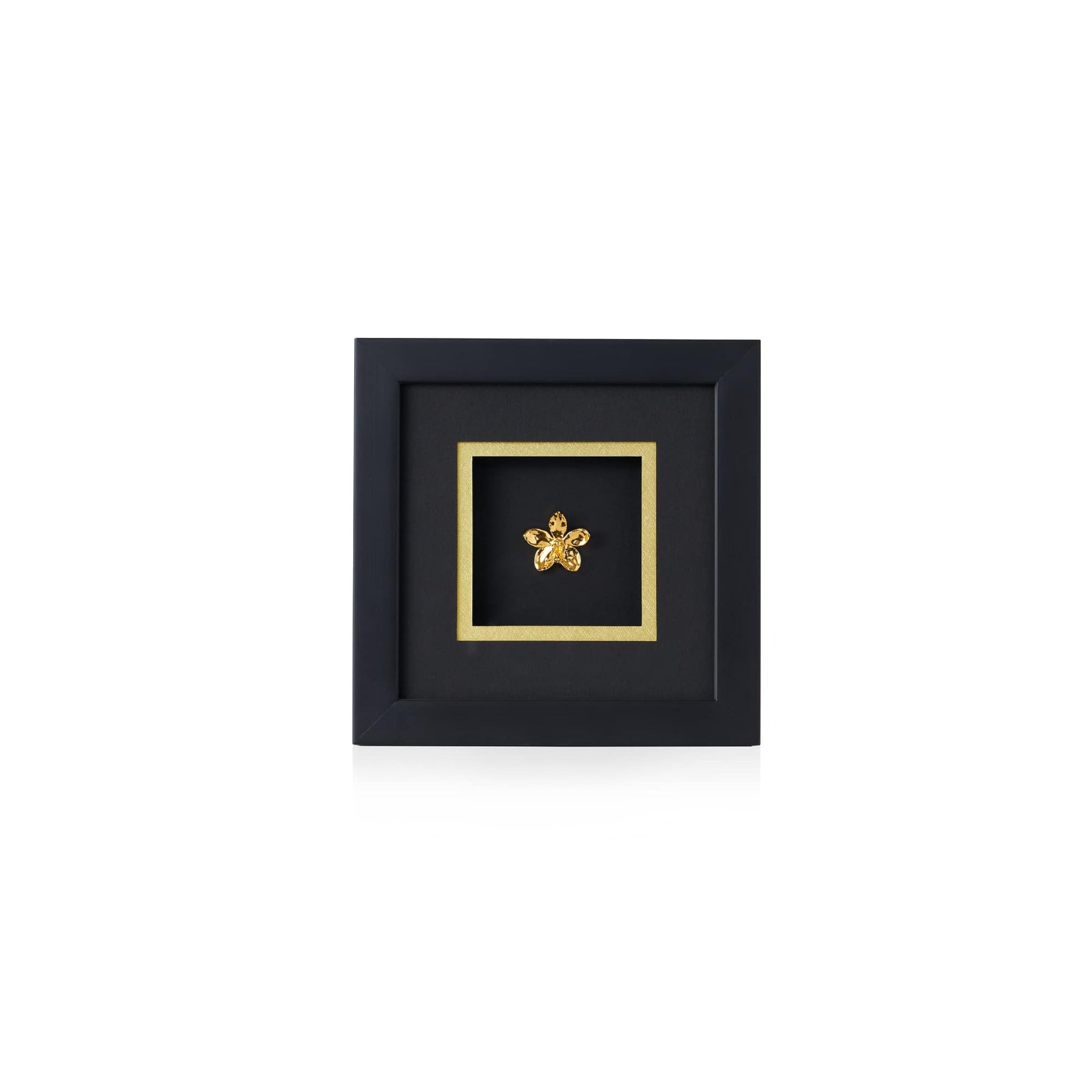 Discover an exquisite frame that adds flair to any space. Featuring natural Aeridovanda Vieng Ping Orchid encapsulated in 24K Swiss Gold, making it a great conversational piece with its real blooms. Each statement piece is meticulously handcrafted, presenting as a wonderful addition to your workspace or as a gift for a treasured business associate.