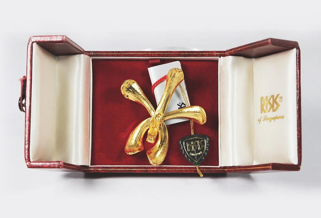 One of the first series of orchids that RISIS plated in gold was the Aranda Deborah. An Identity for Singapore. Source: National Library, Singapore.