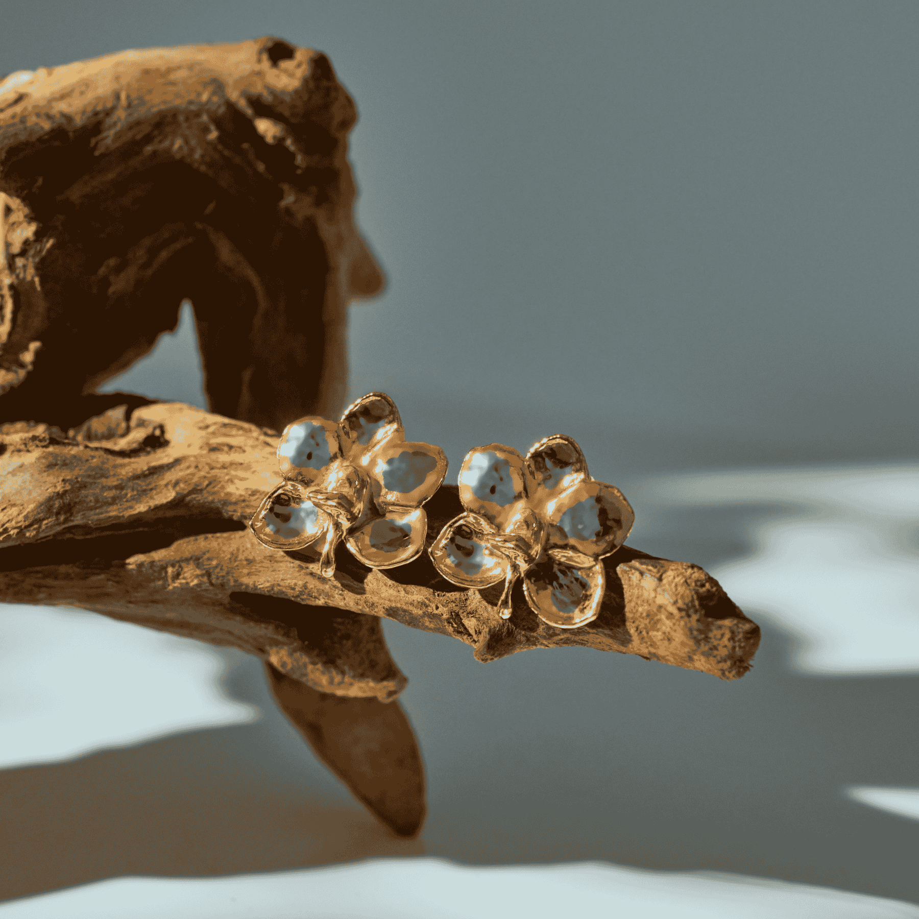 RISIS Ascocenda Blossom Earrings, Natural Ascocenda Orchid, Encapsulated in 24K Swiss Gold and Palladium