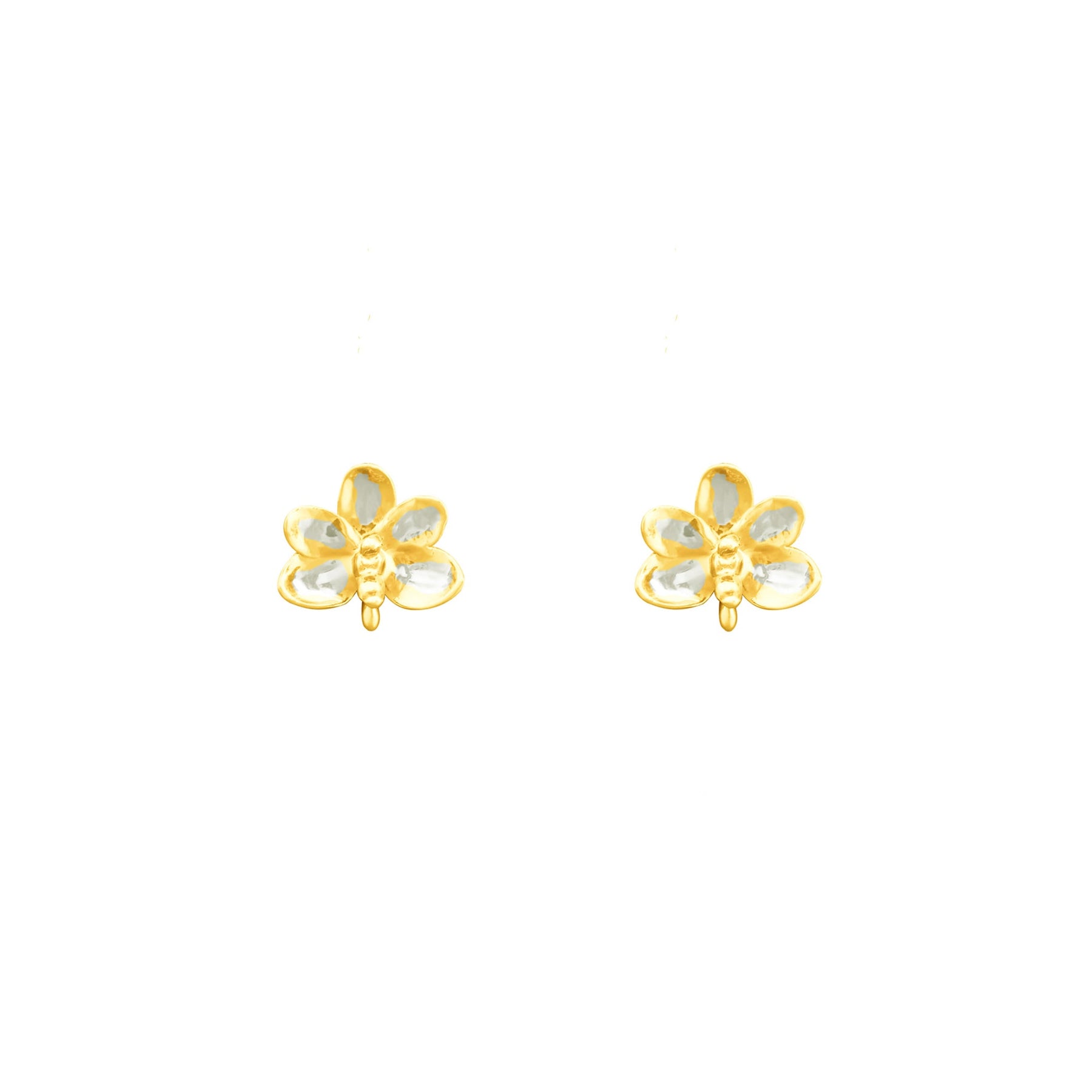 Risis Ascocenda Blossom Earrings - A pair of gold-tone flower-shaped earrings with translucent yellow petals, symmetrically arranged and reflecting light, creating a delicate and elegant appearance.