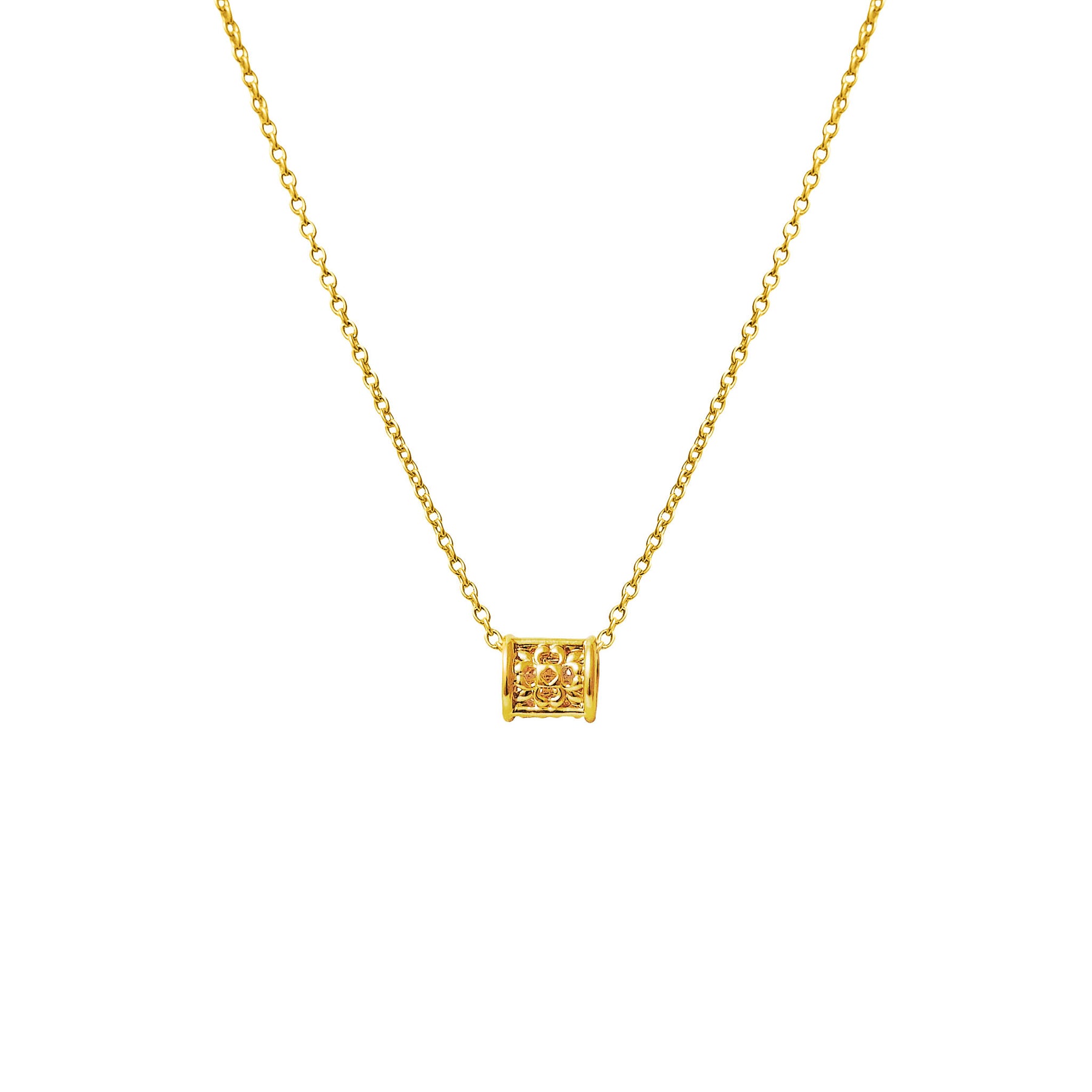 Channelling the precise geometry of Peranakan mosaics, this alluring Gold pendant transforms intricate filigree into a high-polish jewellery, adding refined sophistication to any ensemble. Meticulously crafted and encapsulated in 24K Swiss Gold, the necklace is designed with two adjustable lengths and the versatility to be layered with another chain for a personalized look.